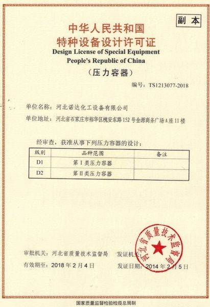 特种设备设计许可证