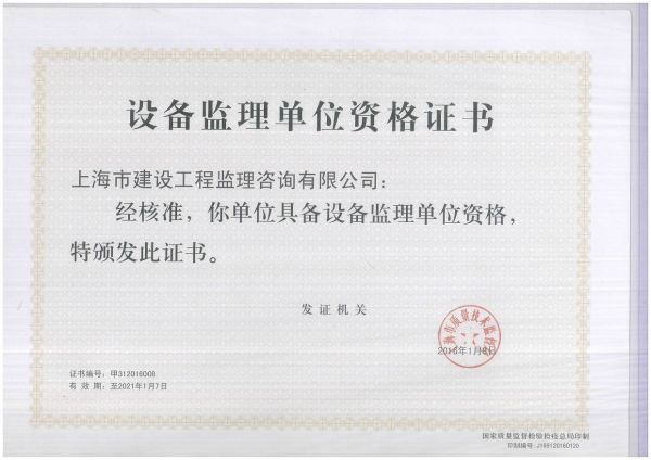 设备监理单位资格证书