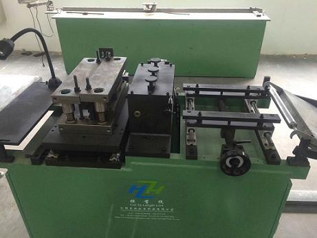 针对硅钢片材料加工铁芯要求不同长度的特点利用程序自动调节,只要将需要的长度输入就可以获得准确的尺寸,同时也可以对因送料辊精确度的误差而进行补偿,以达到效果。